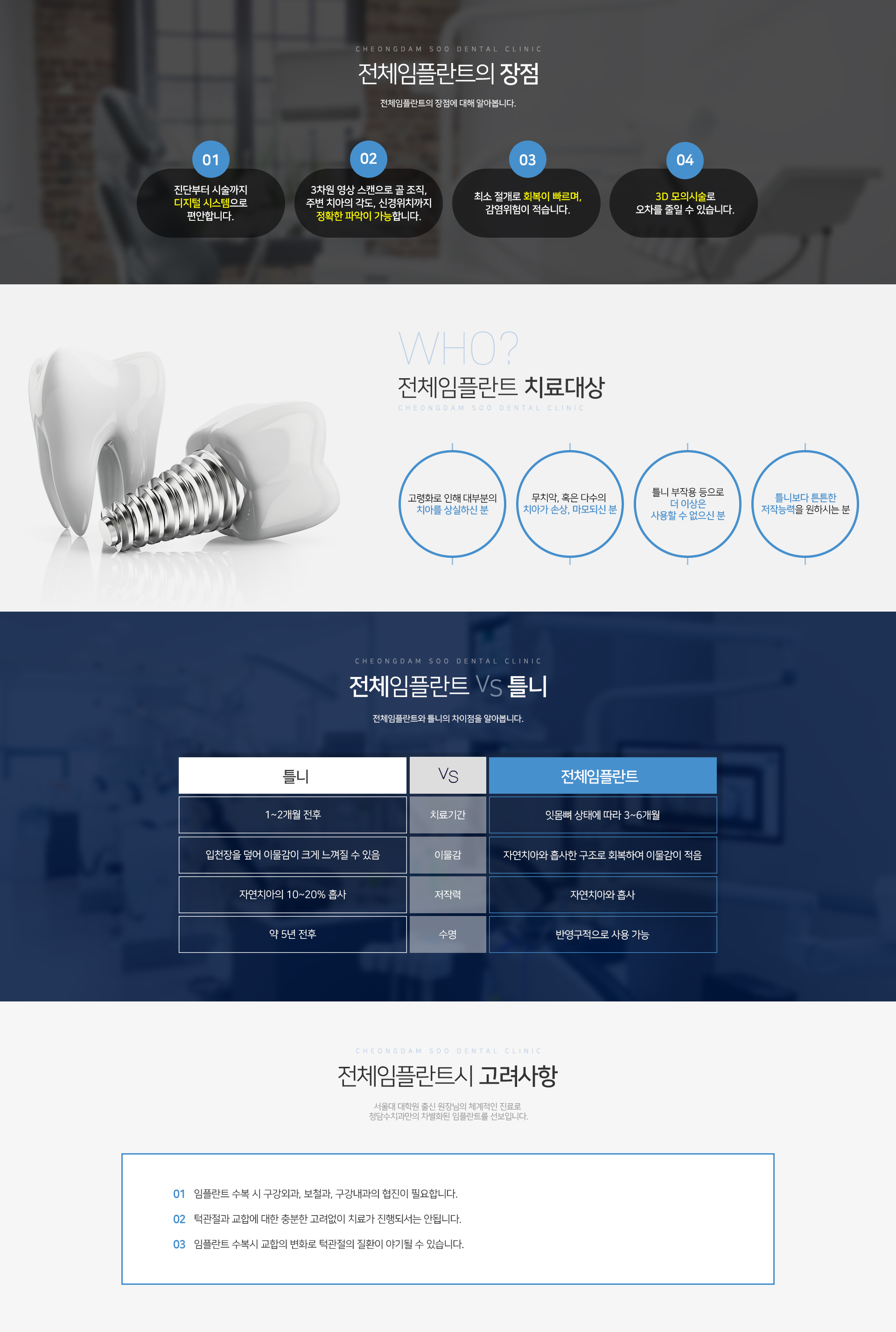 청담수치과의 전체임플란트는 자연치아가 사고나 충치, 잇몸질환 등의 이유로 모두 상실된 경우