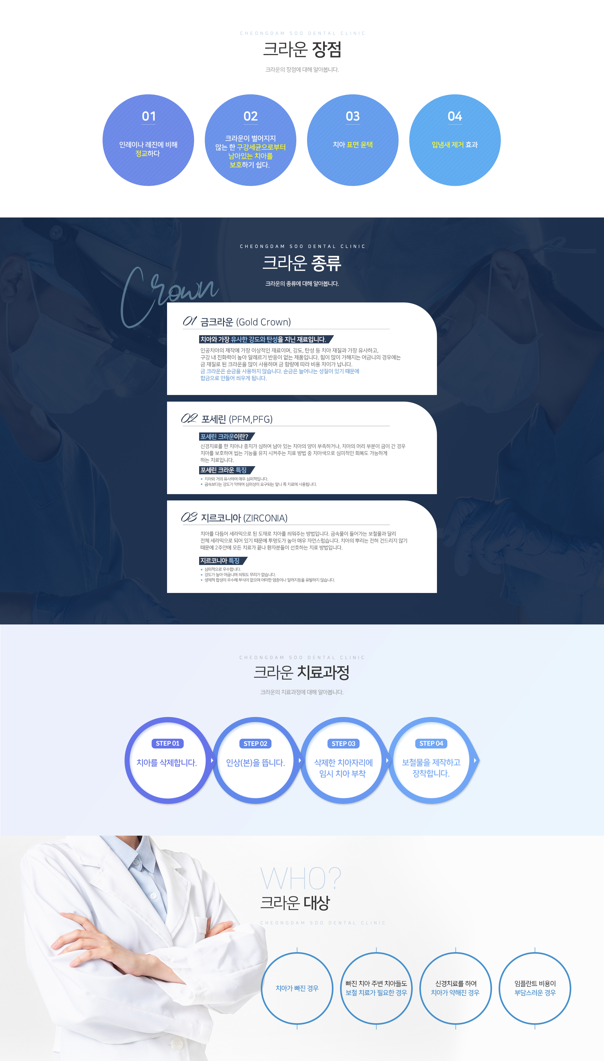 크라운의 종류에는 골드크라운, 지르코니아, 포세린, 올세라믹 등이 있습니다.