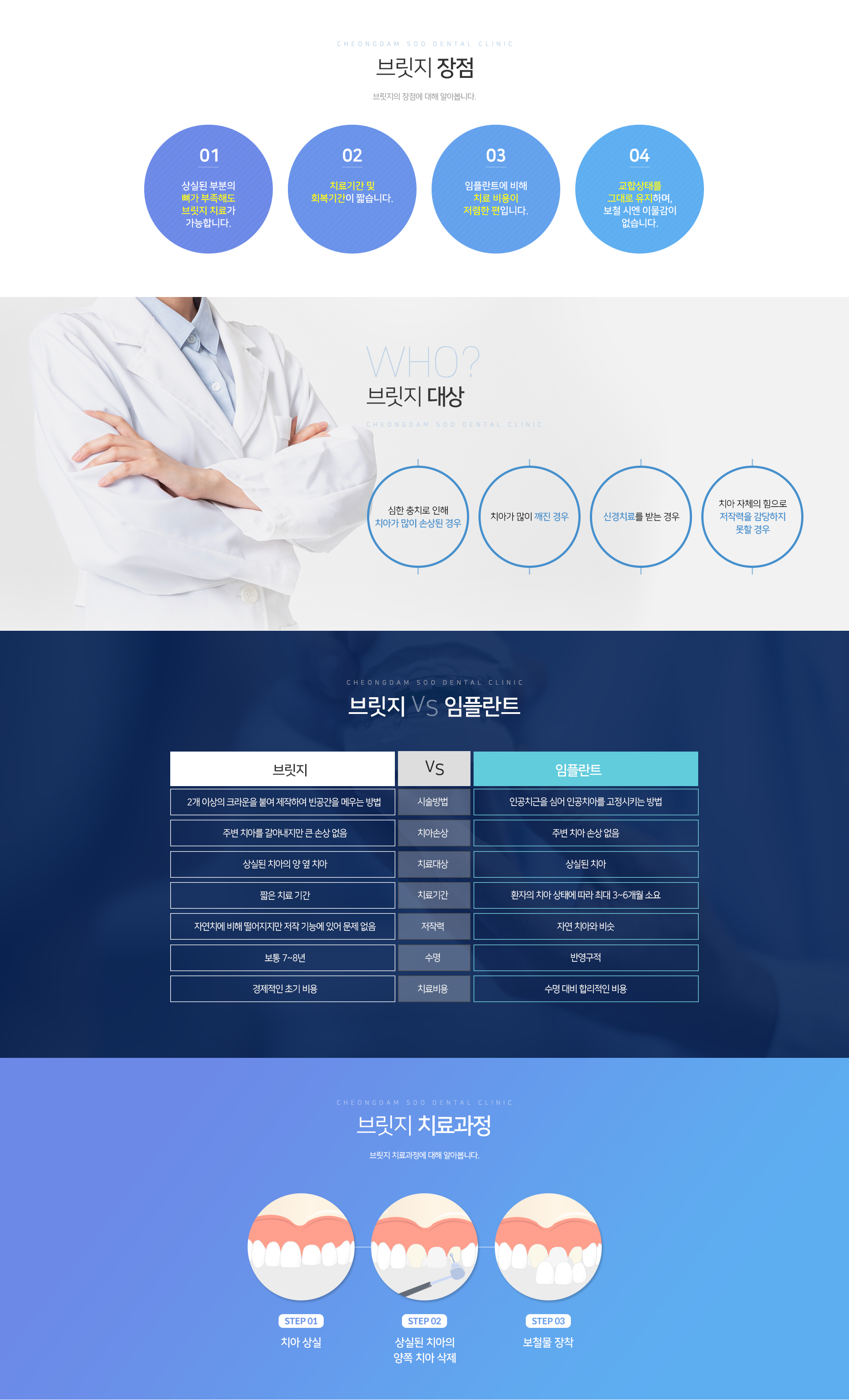 치아가 손상되어도 뿌리가 남아있다면 브릿지 시술이 필요가 없지만 치아의 뿌리가 남아있지 않은 경우에는 브릿지시술을 필요로 합니다.