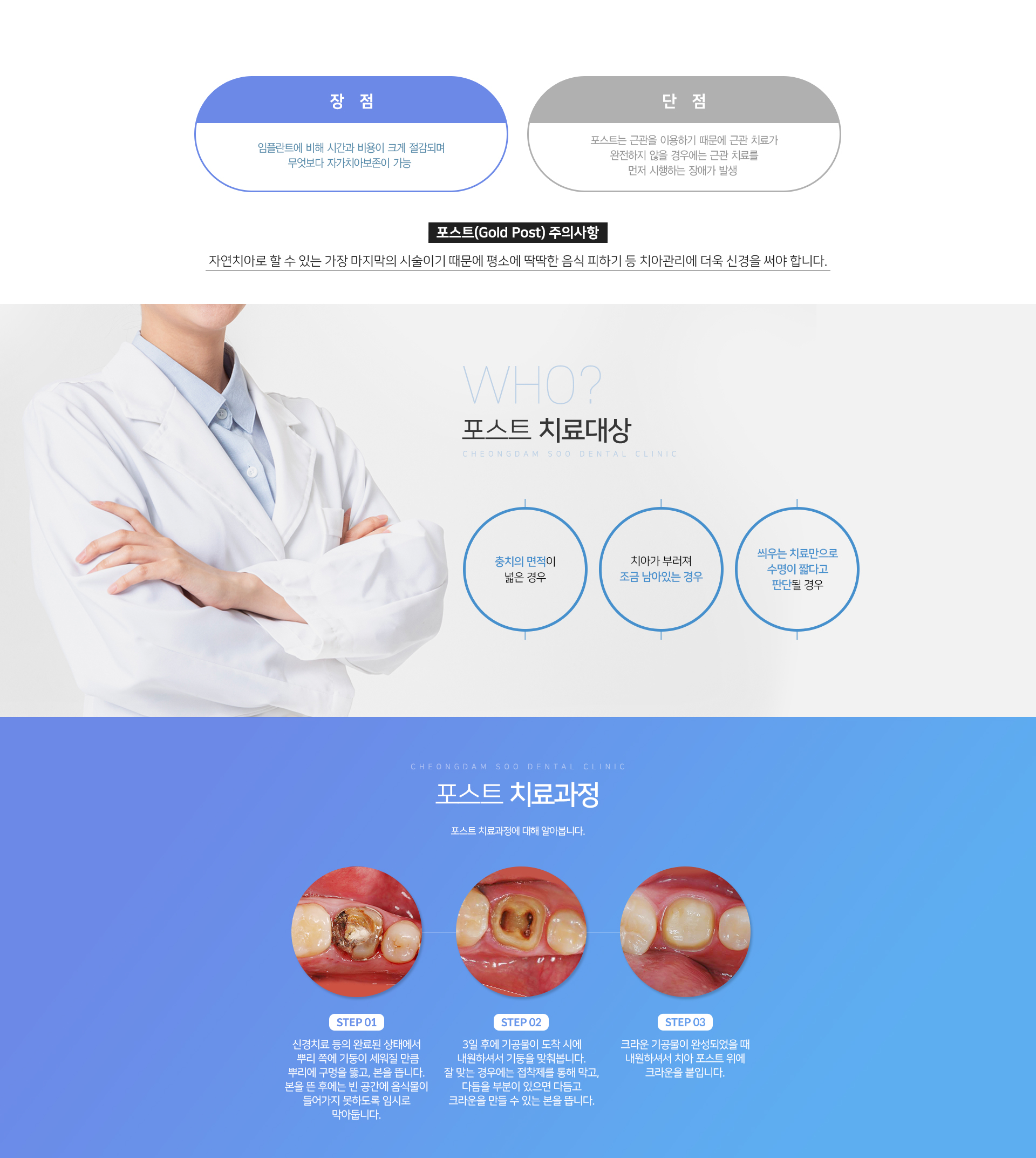 아말감이나 레진 등으로 치아모양을 만든 코어가 쉽게 탈락하는 경우에도 포스트 치료가 필요합니다.