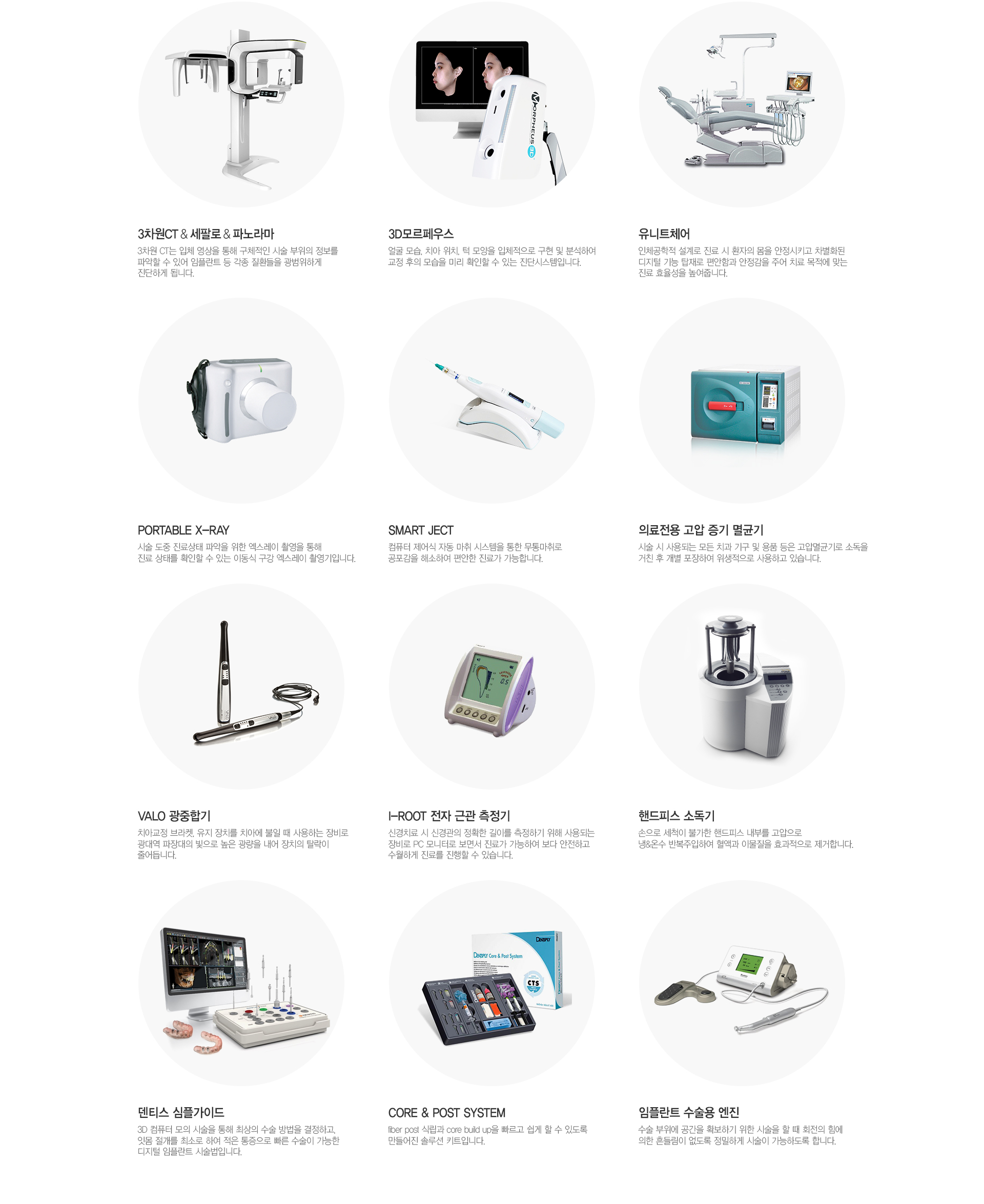 진단장비 시스템 청담수치과 장비시스템 cheongdam soo dental clinic 청담수치과는 대학병원급 3D 정밀진단 장비를 보유하고 있습니다. 전문 의료진의 노하우를 더해 원인을 분석하여 근본부터 치료합니다.