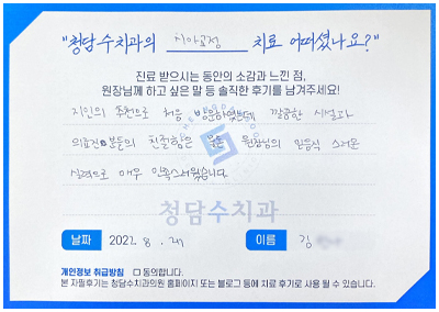 [치아교정] 김OO님 자필후기 페이지 정보 작성자 청담수치과 작성일 22-10-27 13:26 본문 [치아교정] 김OO님 자필후기 목록 답변 이전글[치아교정] 박OO님 자필후기 22.10.27 다음글[치아교정] 김OO님 자필후기 22.10.27 댓글목록 댓글목록 등록된 댓글이 없습니다.