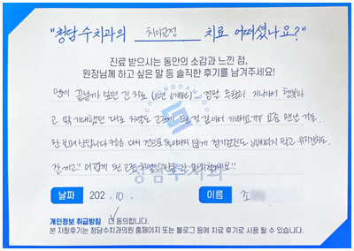 [치아교정] 조OO님 자필후기 페이지 정보 작성자 청담수치과 작성일 22-10-27 13:28 본문 [치아교정] 조OO님 자필후기 목록 답변 이전글[충치치료] 쟌OO님 태국환자 자필후기 22.11.02 다음글[치아교정] 이OO님 자필후기 22.10.27 댓글목록 댓글목록 등록된 댓글이 없습니다.