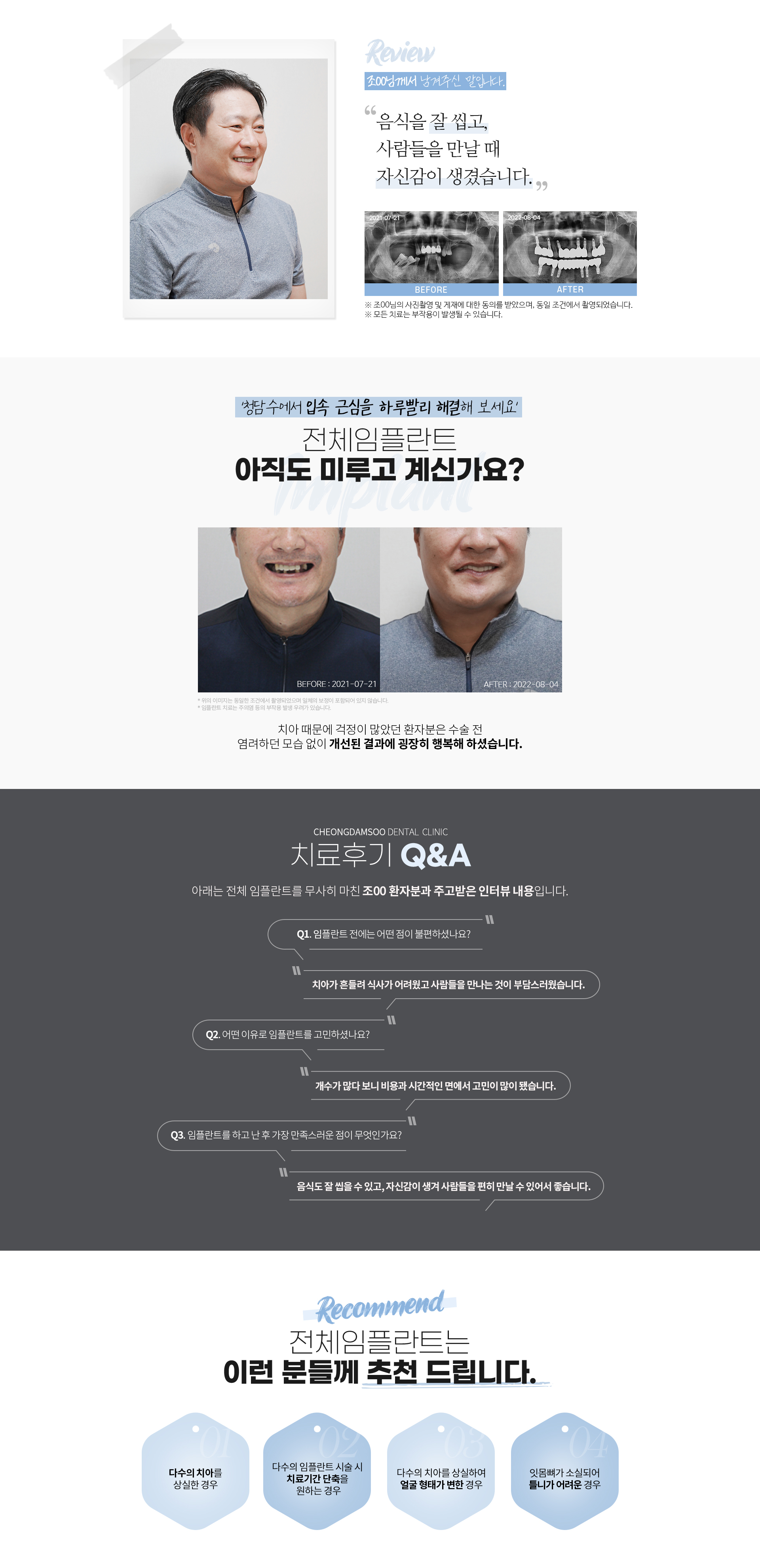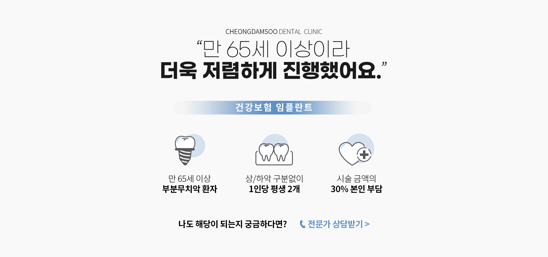 청담수치과는 풍부한 경험과 노하우를 갖춘 숙련된 의료진이 잇몸이 약하고 고령인 불들을 위해 절제되고 안전한 수술법으로